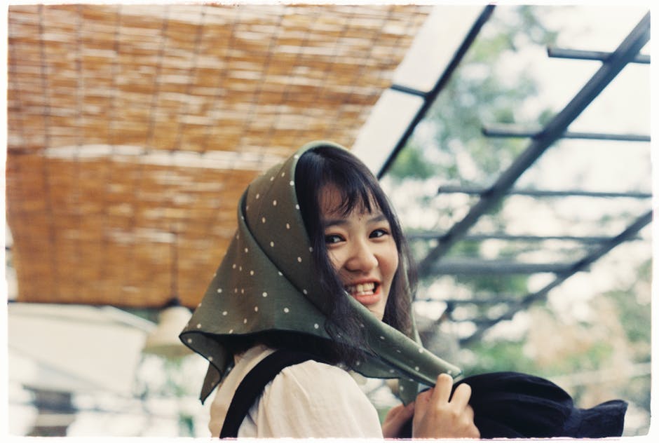 微笑的女人穿着围巾 · 免费素材图片