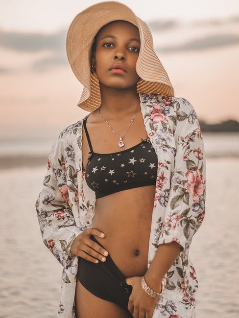常设女人戴着黑色比基尼和棕色太阳帽的选择性聚焦摄影 · 免费素材图片