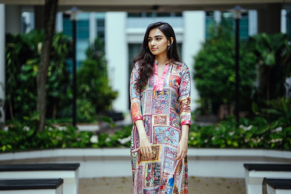 女人在花salwar Kameez摆姿势而看着别处的照片 · 免费素材图片