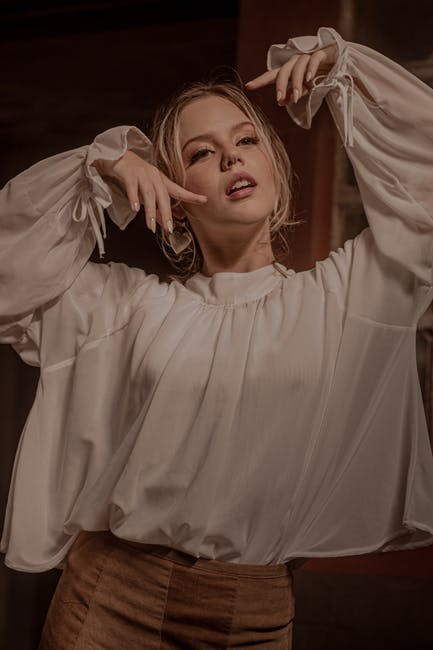 举起双手摆在白色上衣和棕色裙子的女人的照片 · 免费素材图片