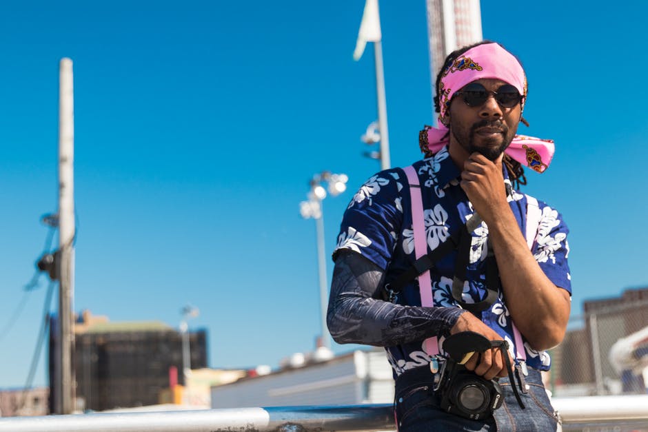 蓝色和白色碎花连衣裙t恤的男人 · 免费素材图片
