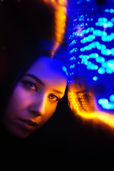 霓虹灯附近的女人的脸的特写照片 · 免费素材图片