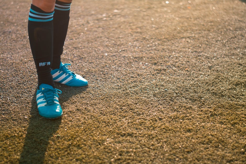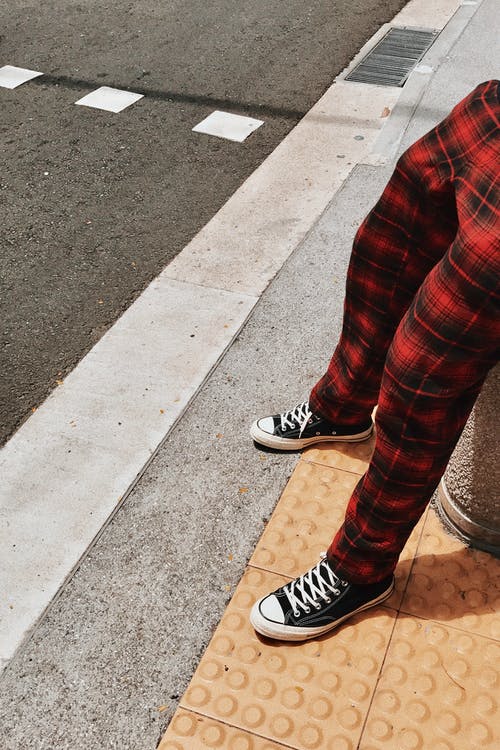 穿蓝色底脚和黑色及膝袜的人 · 免费素材图片