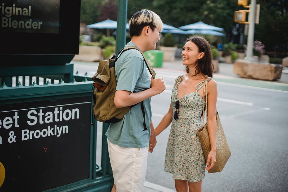 微笑的女士与男朋友在人行道上牵手 · 免费素材图片