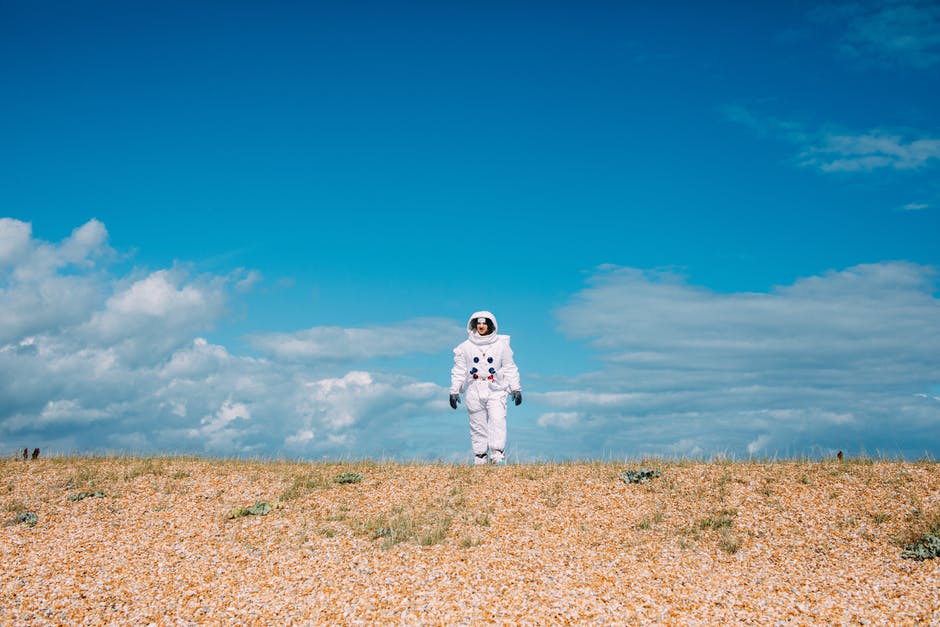 站在蓝天下的棕色草地上的服装的人 · 免费素材图片