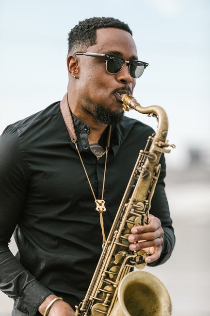 弹奏萨克斯管的黑色圆领衬衫的男人 · 免费素材图片