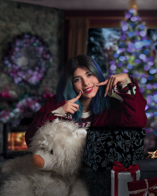 拿着白熊毛绒玩具的红色和黑色长袖衬衫的女人 · 免费素材图片