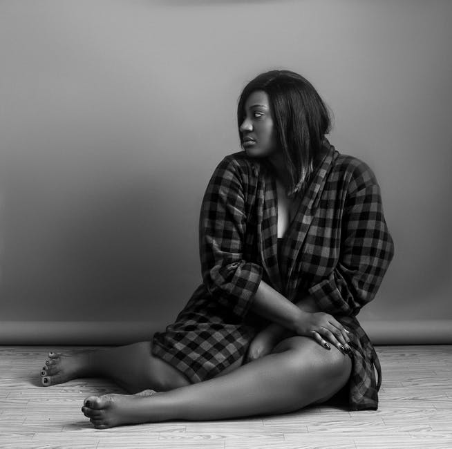 女人坐在地板上的灰度照片 · 免费素材图片