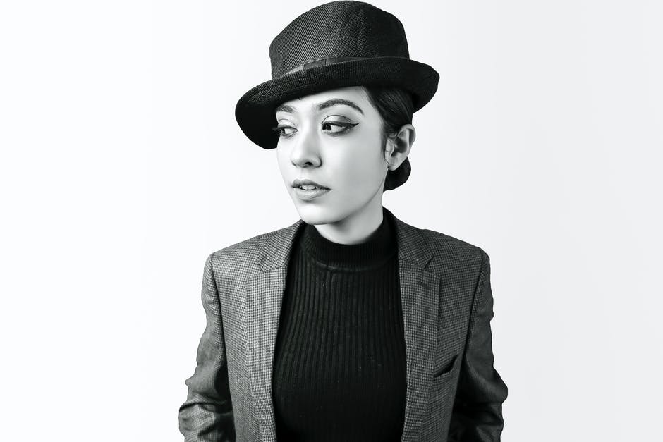 女人穿着西装外套和软呢帽的灰度照片 · 免费素材图片