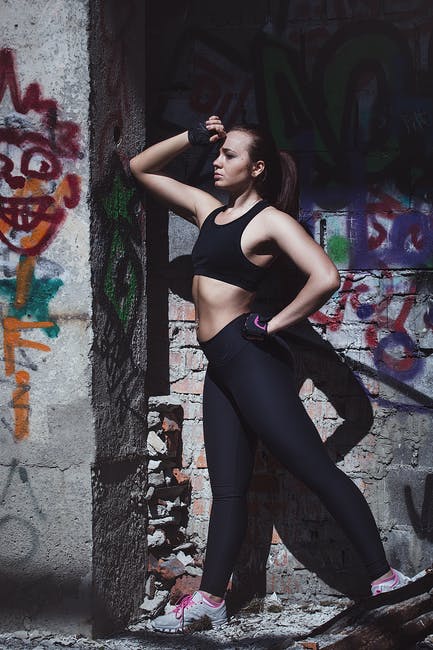 运动胸罩和紧身裤站在墙上的女人 · 免费素材图片