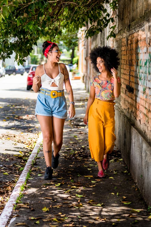 笑的女人,穿着灰色大衣,拿着她的手机和太阳镜走路的选择性焦点照片 · 免费素材图片