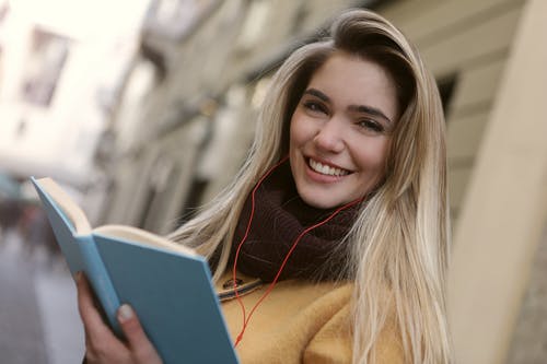 紫色的围巾,读一本书的女人 · 免费素材图片