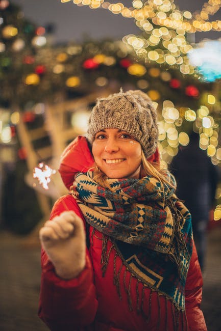 女人穿着围巾和帽子微笑 · 免费素材图片