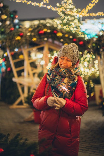 女人微笑着拿着点燃的烟火 · 免费素材图片