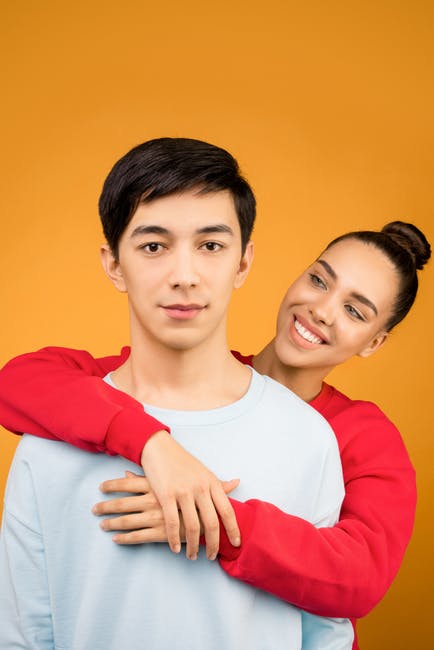 从后面拥抱男人的微笑妇女的照片 · 免费素材图片