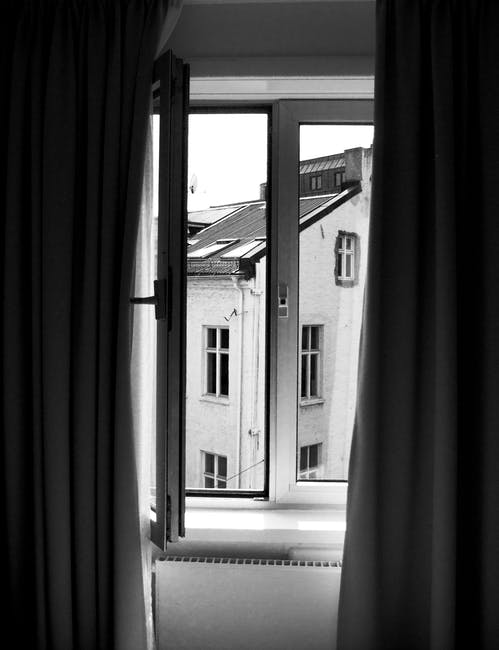 窗帘和窗户的灰度摄影 · 免费素材图片