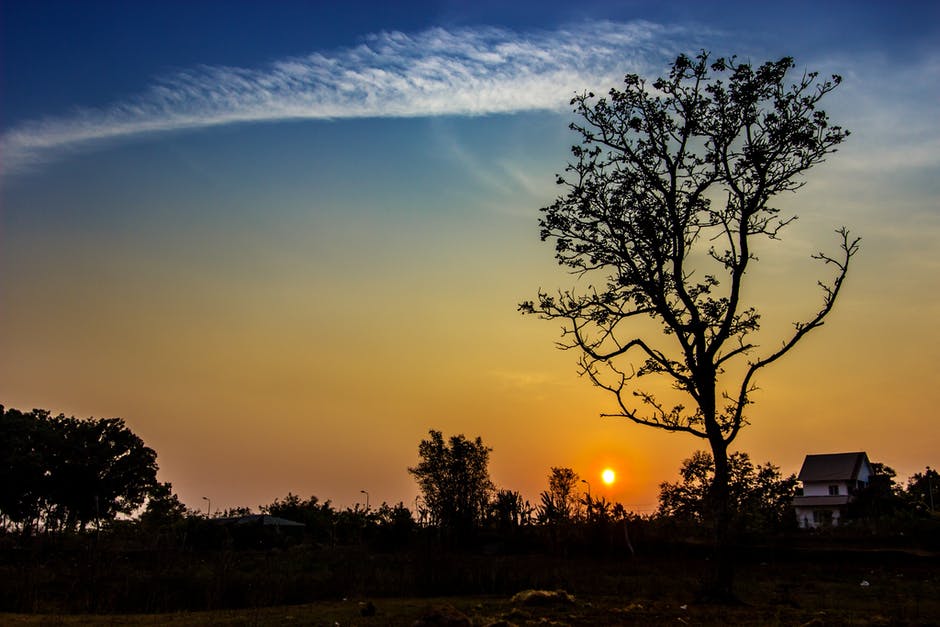 树木和房屋在蓝蓝的天空下的剪影 · 免费素材图片