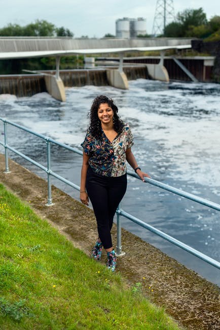 女工程师站在河边 · 免费素材图片