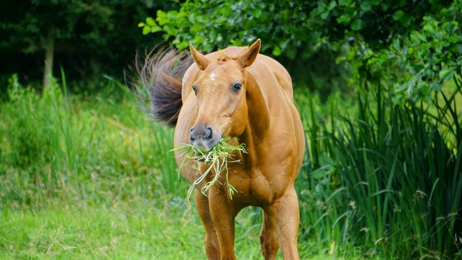 匹棕色的马,吃草 · 免费素材图片