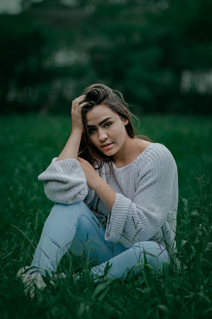 坐在绿草地上的白色长袖衬衫的女人 · 免费素材图片