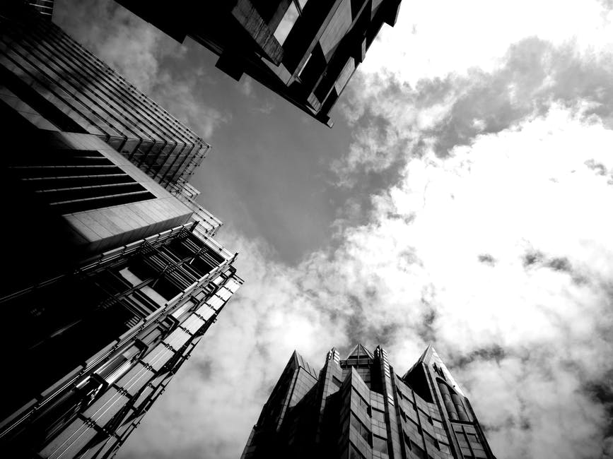 高层建筑的灰度和低角度摄影 · 免费素材图片