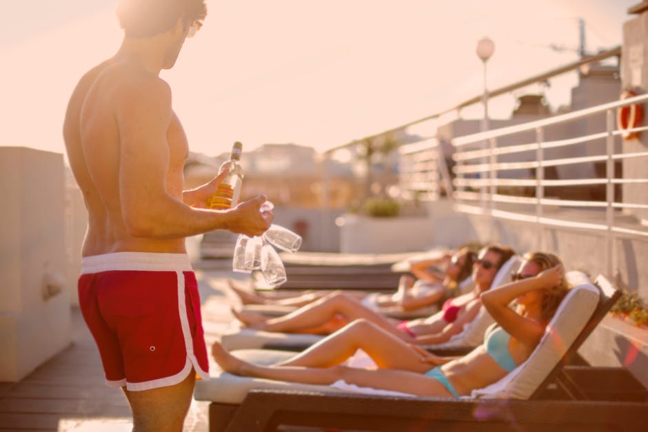 年轻人向日光浴的女朋友提供饮料 · 免费素材图片