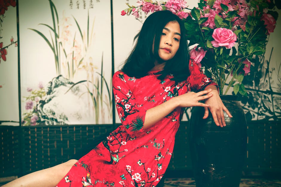 女人穿着红色和白色的花圆领短袖连衣裙 · 免费素材图片