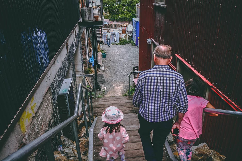 男人和两个女孩在楼梯上走下来 · 免费素材图片