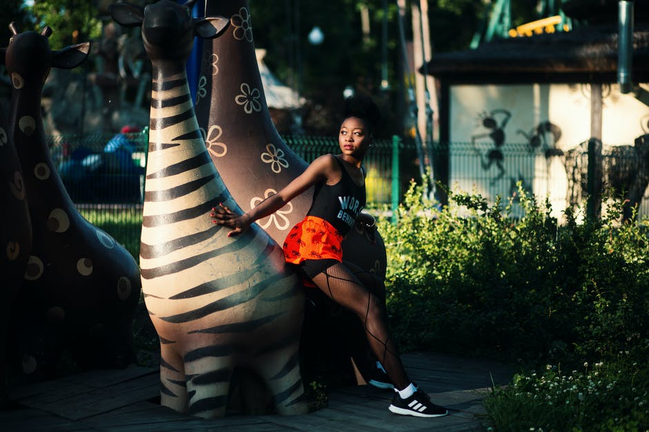 女人在斑马雕像旁边的照片 · 免费素材图片