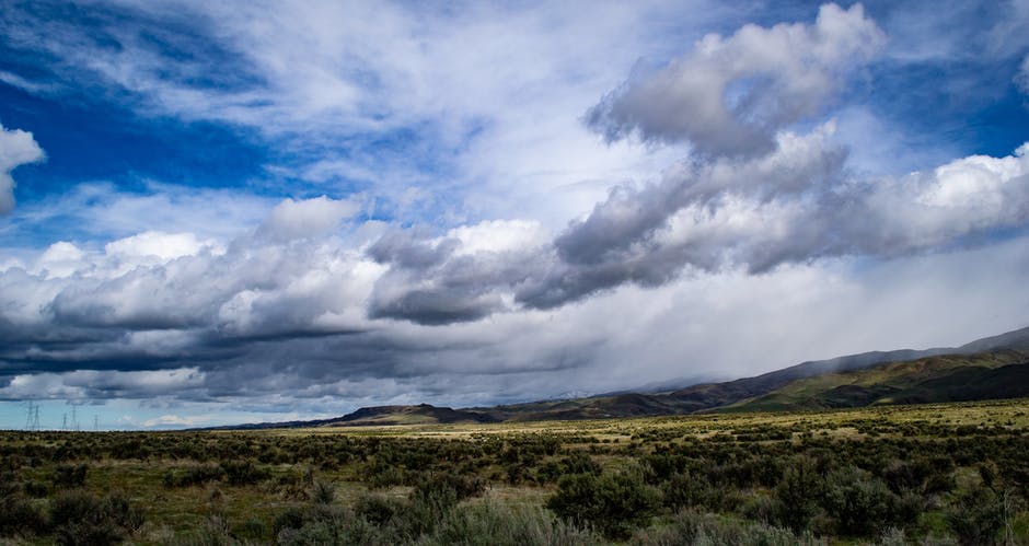 多云的天空下的绿色田野的风景摄影 · 免费素材图片