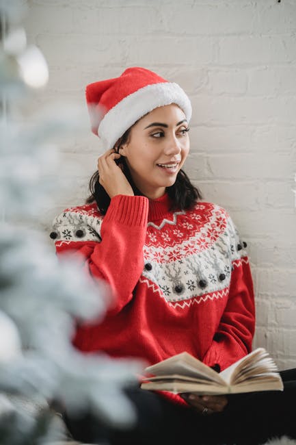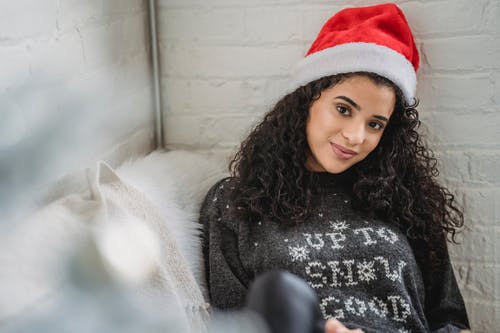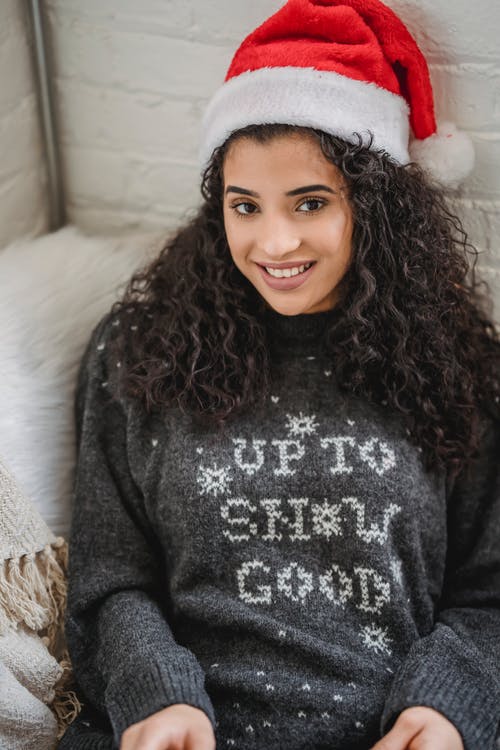 红色和白色的毛衣,戴着白色针织帽的女人 · 免费素材图片