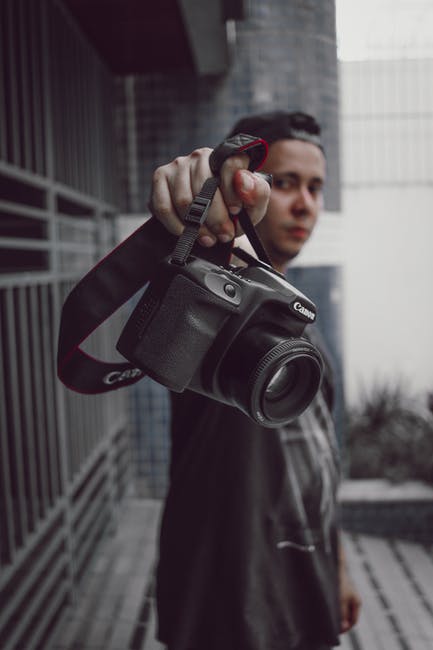拿着黑色佳能相机的人 · 免费素材图片