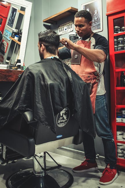 坐在理发椅上的男人剪头发的男人 · 免费素材图片