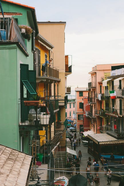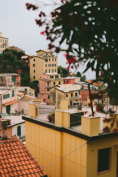 在老城狭窄的街道上的旧多彩房子 · 免费素材图片