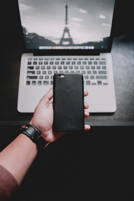 在macbook Pro附近拿着iphone的人 · 免费素材图片