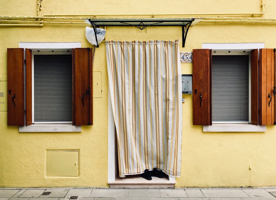 黄墙上的白色和棕色的窗帘 · 免费素材图片