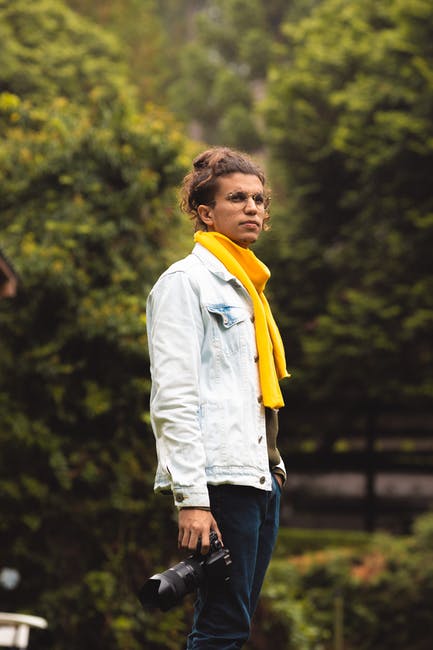 男子手持照相机望着远方的照片 · 免费素材图片