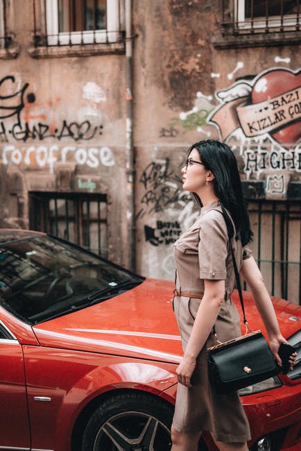 有关停放的汽车, 侧面图, 咖啡色头发的女人的免费素材图片