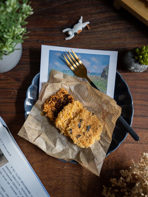 用叉子在木桌上的盘子饼干 · 免费素材图片