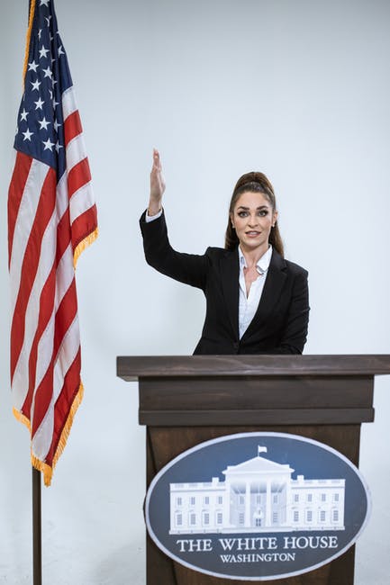 拿着我们的旗帜的黑色西装外套的女人 · 免费素材图片