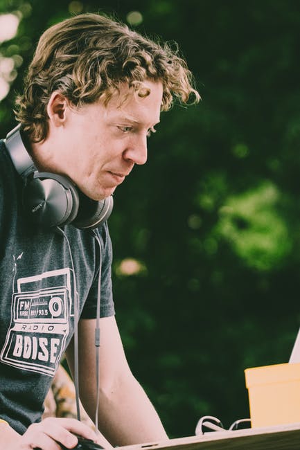 男子手持带耳机的电脑鼠标 · 免费素材图片