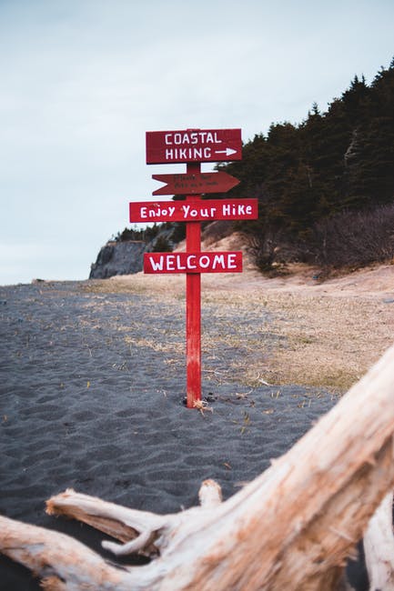 与远足方向在海滩上的红色标志 · 免费素材图片