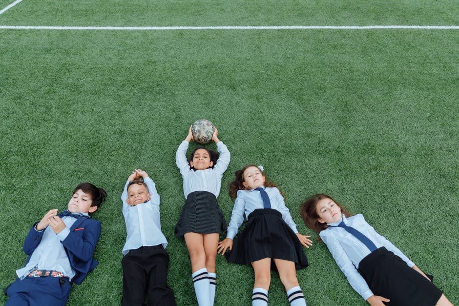 儿童躺在草地上的高角度拍摄 · 免费素材图片