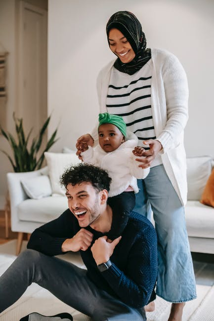 黑色和白色长袖衬衫的男人抱着婴儿的绿色和白色条纹衬衫 · 免费素材图片