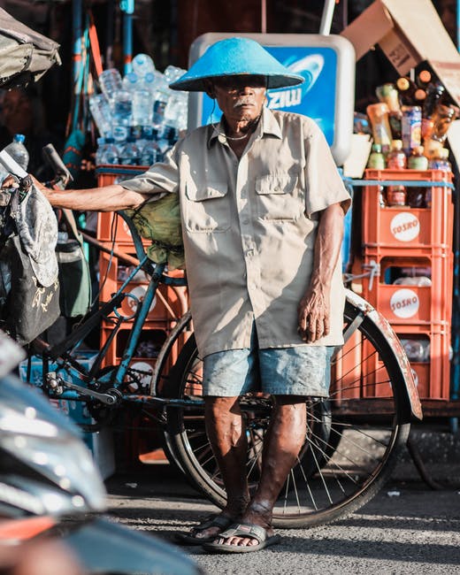 除了蓝色自行车,男人穿棕色礼服衬衫 · 免费素材图片