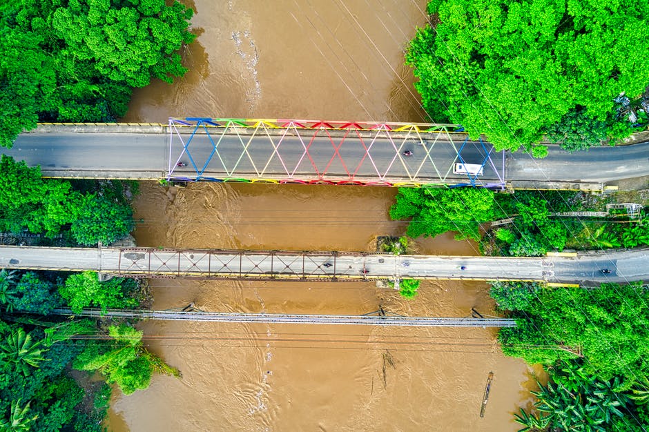洪水泛滥的河上大桥的航拍照片 · 免费素材图片