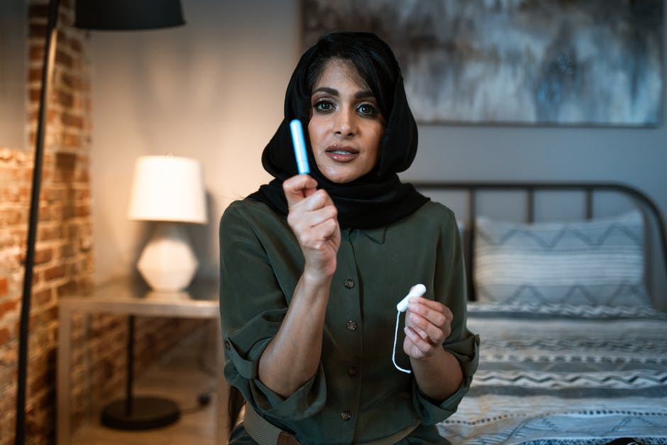 拿着卫生棉条的头巾的女人 · 免费素材图片