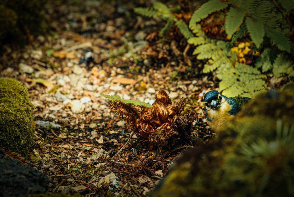 蓝鸟附近的绿色蕨类植物 · 免费素材图片