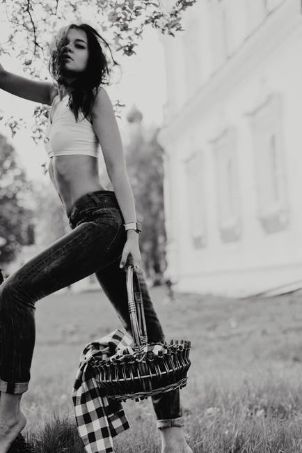 站在篮子里摆姿势的作物顶部站立女人的灰度照片 · 免费素材图片