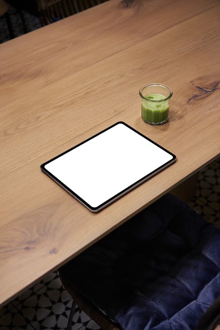 棕色木制的桌子上的白色平板电脑 · 免费素材图片